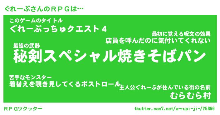 | 伝説のあだ名 | 『伝説の竜騎士ぐれーぷ』 |