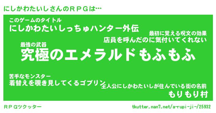 | 胡散臭い通販商品みたいなあだ名 | 『モテモテ間違いなし霊験あらたかなお札…その名も「にしかわたいし」』 |