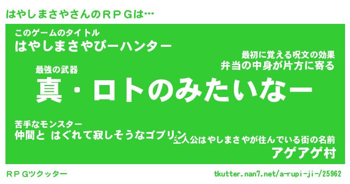 | 男性向けラノベタイトル風あだ名 | 『ハヤシマサヤアートオンライン』 |