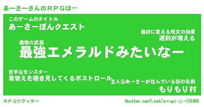 | 意味不明あだ名 | 『ペロリンあーさー』『永久保存あーさー』 |