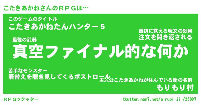 | 伝説のあだ名 | 『封印されし傭兵こたきあかね』 |