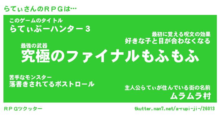 | 伝説のあだ名 | 『不死鳥の竜騎士らてぃ』 |