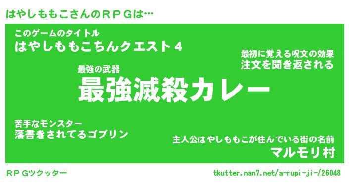 | 男性向けラノベタイトル風あだ名 | 『ハヤシモモコアートオンライン』 |