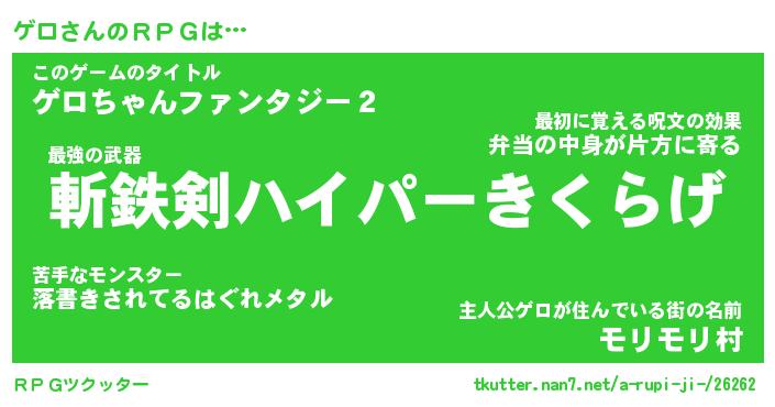 | ファンタジー風あだ名 | 『ゲロフェル』『エターナルゲロー』 |