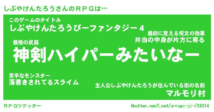 | 男性向けラノベタイトル風あだ名 | 『しぶやけんたろうの憂鬱』 |