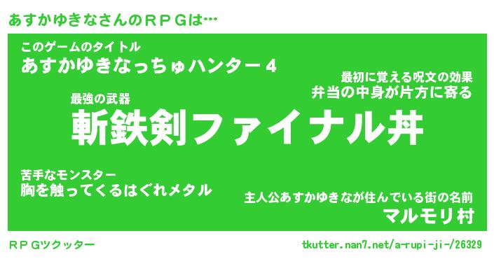 | ヒーロー風カッコイイあだ名 | 『スーパーアスカユキナ』『天弓騎士アス』 |