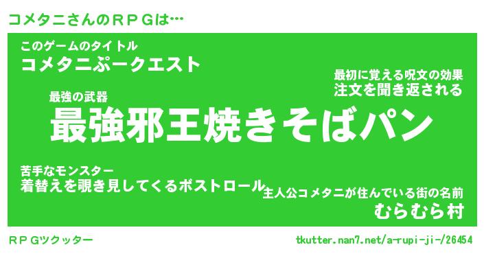 | ファンタジー風あだ名 | 『コメフェル』『エターナルコメタニー』 |