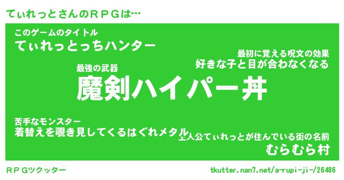 | 伝説のあだ名 | 『伝説の竜騎士てぃれっと』 |