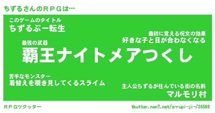 | ファンタジー風あだ名 | 『チズフェル』『エターナルチズルー』 |