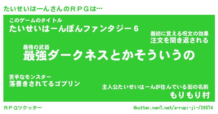 | 男性向けラノベタイトル風あだ名 | 『タイセイハーンアートオンライン』 |