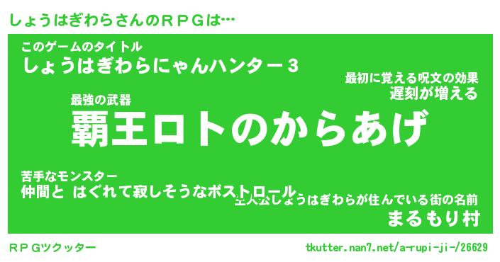 | 男性向けラノベタイトル風あだ名 | 『ショウハギワラアートオンライン』 |