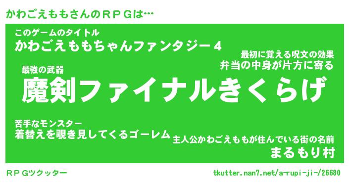 | 男性向けラノベタイトル風あだ名 | 『かわごえももの憂鬱』 |