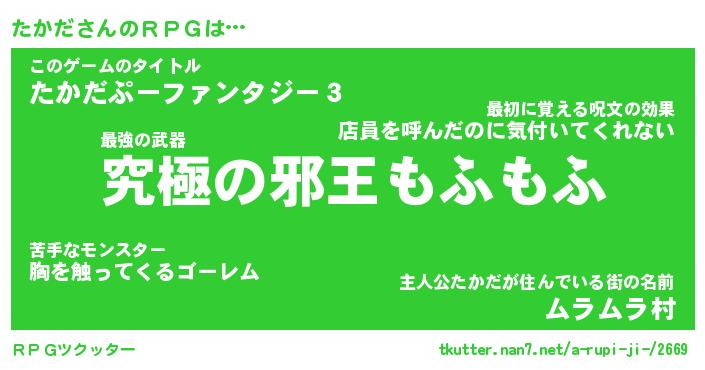 | 男性向けラノベタイトル風あだ名 | 『たかだの憂鬱』 |