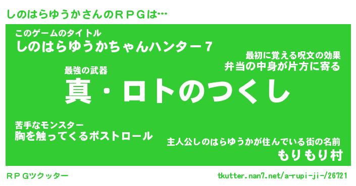 | 伝説のあだ名 | 『封印されし竜騎士しのはらゆうか』 |
