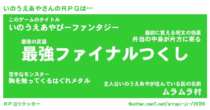 | 伝説のあだ名 | 『不死鳥の傭兵いのうえあや』 |