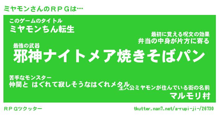 | ファンタジー風あだ名 | 『ミヤフェル』『エターナルミヤモンー』 |