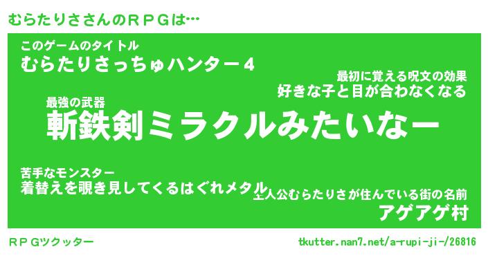 | 伝説のあだ名 | 『伝説の竜騎士むらたりさ』 |