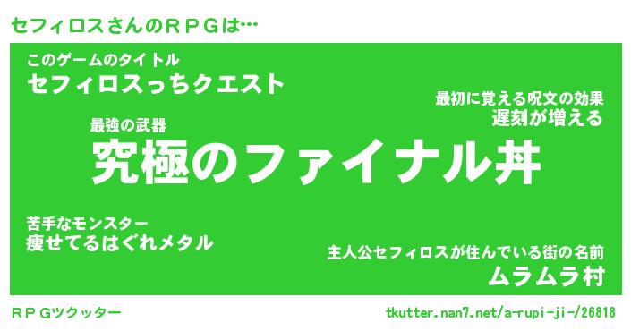 | ファンタジー風あだ名 | 『セフフェル』『エターナルセフィロスー』 |