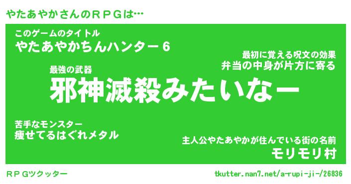 | 伝説のあだ名 | 『封印されしスナイパーやたあやか』 |