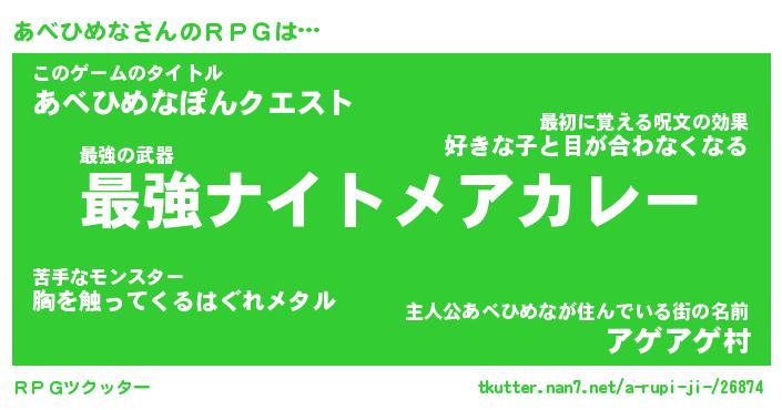 | 男性向けラノベタイトル風あだ名 | 『アベヒメナアートオンライン』 |