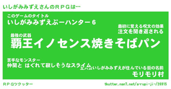 | 胡散臭い通販商品みたいなあだ名 | 『億万長者になれる霊験あらたかなお札…その名も「いしがみみずえ」』 |