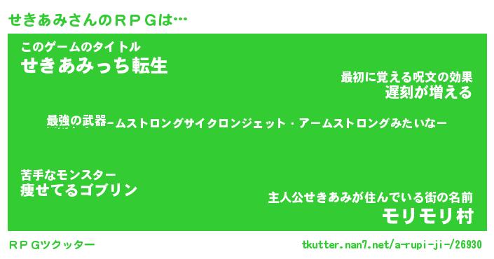 | 男性向けラノベタイトル風あだ名 | 『せきあみの憂鬱』 |