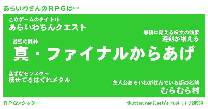 | ヒーロー風カッコイイあだ名 | 『スーパーアライワ』『幻影騎士アラ』 |