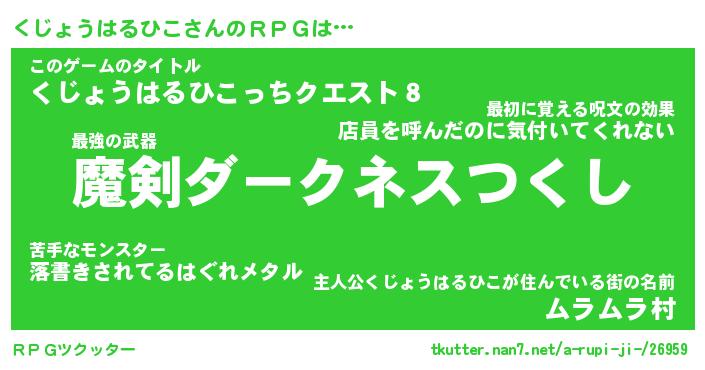 | 男性向けラノベタイトル風あだ名 | 『くじょうはるひこの憂鬱』 |