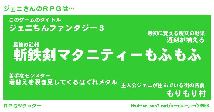 | ファンタジー風あだ名 | 『ジェフェル』『エターナルジェニー』 |