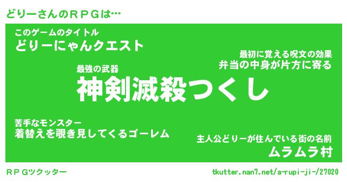 | 男性向けラノベタイトル風あだ名 | 『どりーの憂鬱』 |