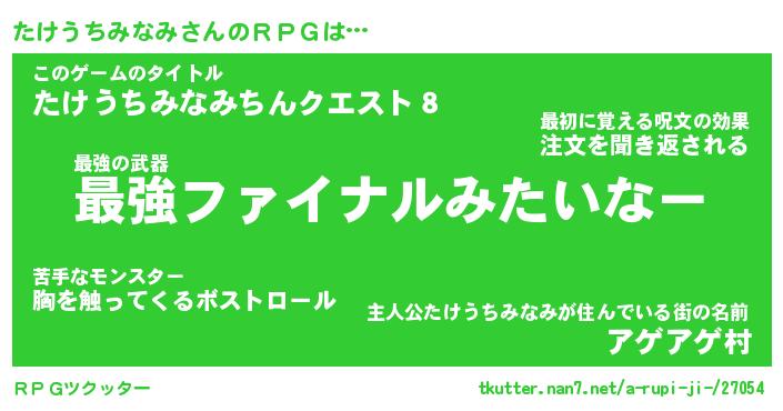| 女子向けラノベタイトル風あだ名 | 『たけうちみなみ姫と円卓の騎士』 |