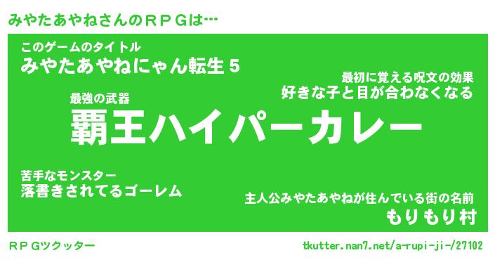 | ヒーロー風カッコイイあだ名 | 『スーパーミヤタアヤネ』『黄金騎士ミヤ』 |