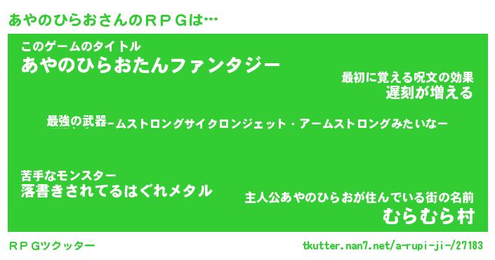 | 男性向けラノベタイトル風あだ名 | 『アヤノヒラオアートオンライン』 |