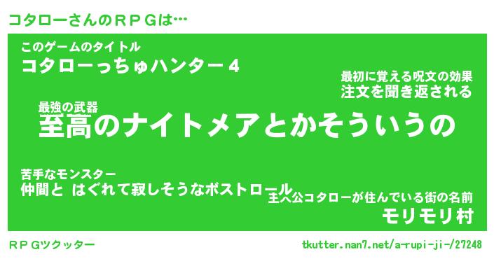 | ファンタジー風あだ名 | 『コタフェル』『エターナルコタローー』 |