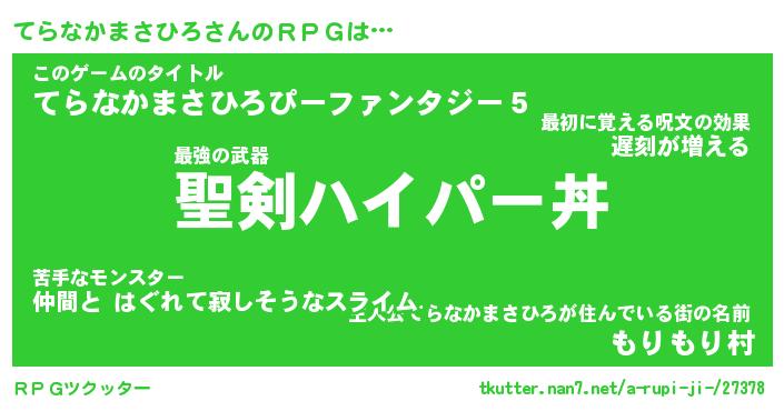 | 伝説のあだ名 | 『伝説の竜騎士てらなかまさひろ』 |