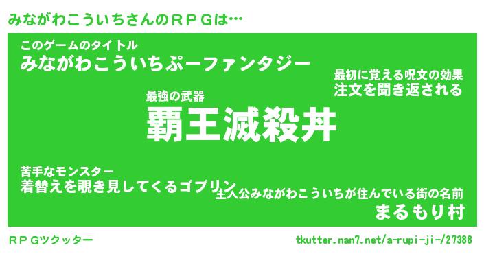 | 伝説のあだ名 | 『封印されしスナイパーみながわこういち』 |