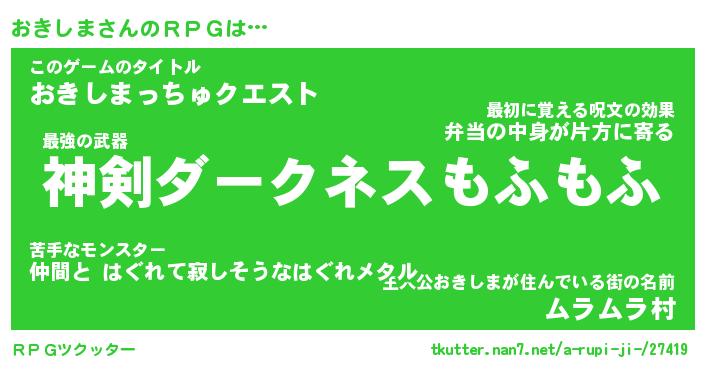 | 男性向けラノベタイトル風あだ名 | 『おきしまの憂鬱』 |
