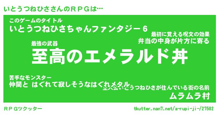 | 男性向けラノベタイトル風あだ名 | 『イトウツネヒサアートオンライン』 |