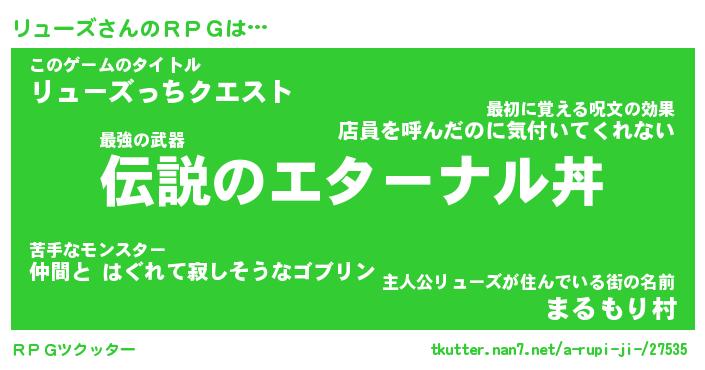 | 男性向けラノベタイトル風あだ名 | 『リューズの憂鬱』 |