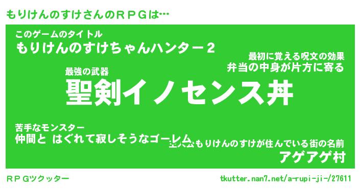 | 男性向けラノベタイトル風あだ名 | 『もりけんのすけの憂鬱』 |