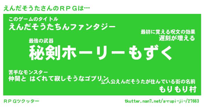 | 男性向けラノベタイトル風あだ名 | 『えんだそうたの憂鬱』 |