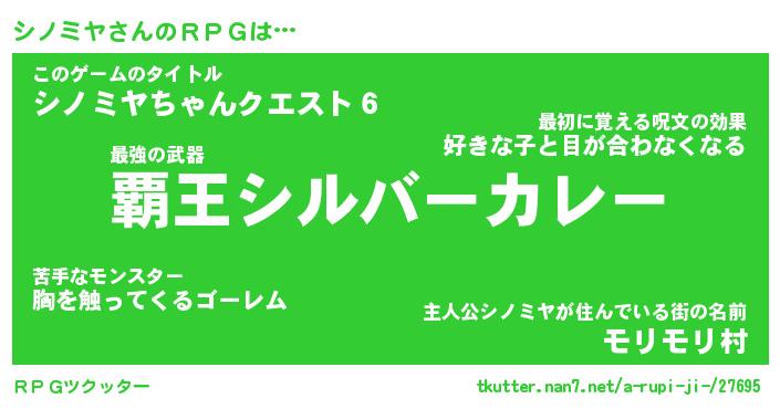 | 男性向けラノベタイトル風あだ名 | 『シノミヤアートオンライン』 |