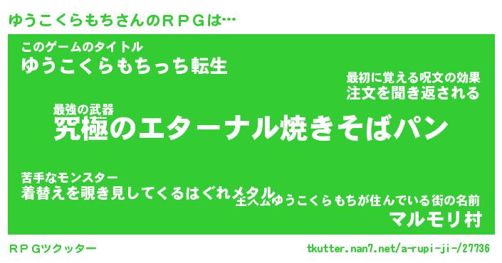 | 男性向けラノベタイトル風あだ名 | 『ゆうこくらもちの憂鬱』 |