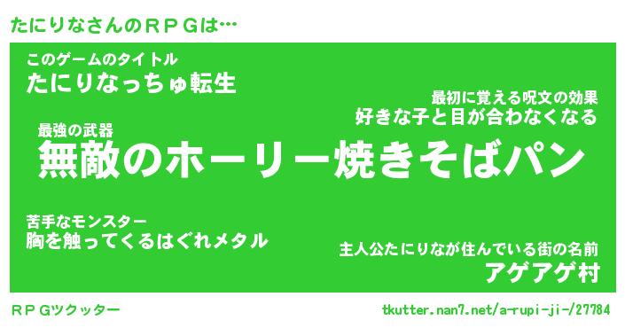 | ヒーロー風カッコイイあだ名 | 『スーパータニリナ』『暗黒騎士タニ』 |