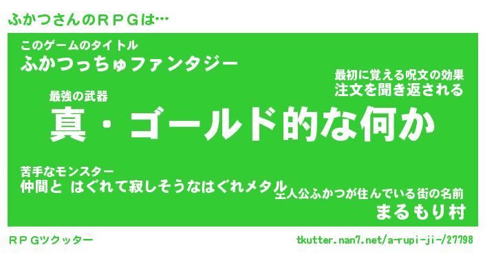 | 男性向けラノベタイトル風あだ名 | 『フカツアートオンライン』 |