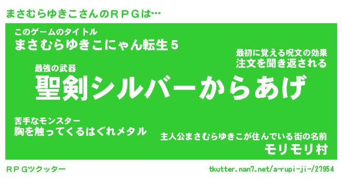 | 男性向けラノベタイトル風あだ名 | 『まさむらゆきこの憂鬱』 |