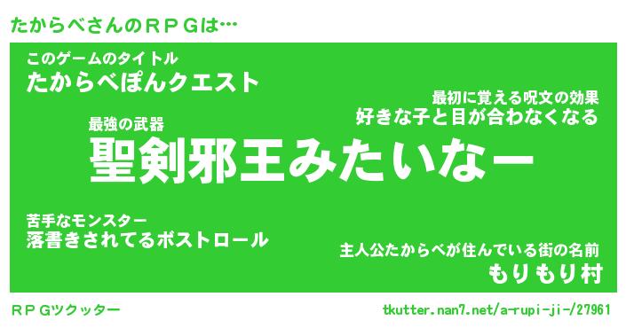 | 男性向けラノベタイトル風あだ名 | 『たからべの憂鬱』 |