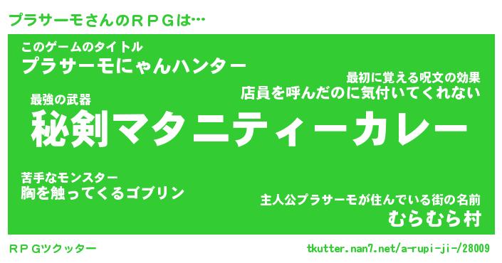 | 男性向けラノベタイトル風あだ名 | 『プラサーモの憂鬱』 |