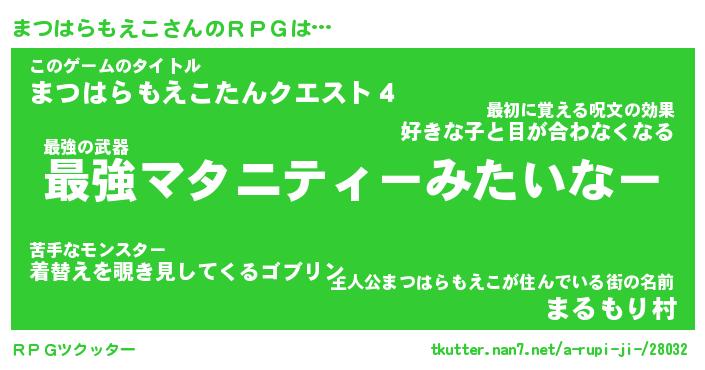 | 伝説のあだ名 | 『不死鳥のスナイパーまつはらもえこ』 |