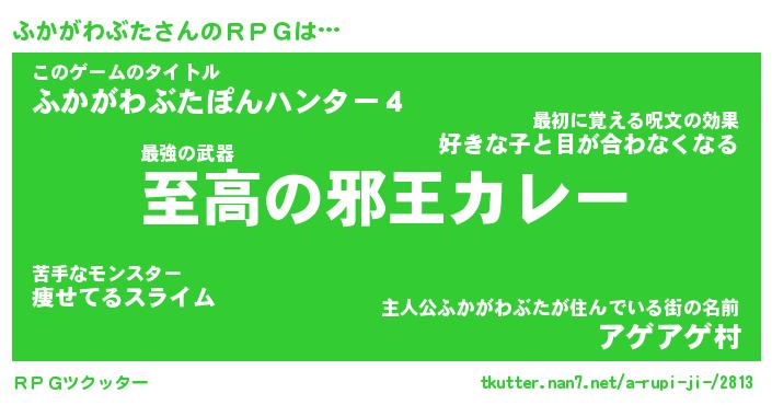 | 男性向けラノベタイトル風あだ名 | 『フカガワブタアートオンライン』 |